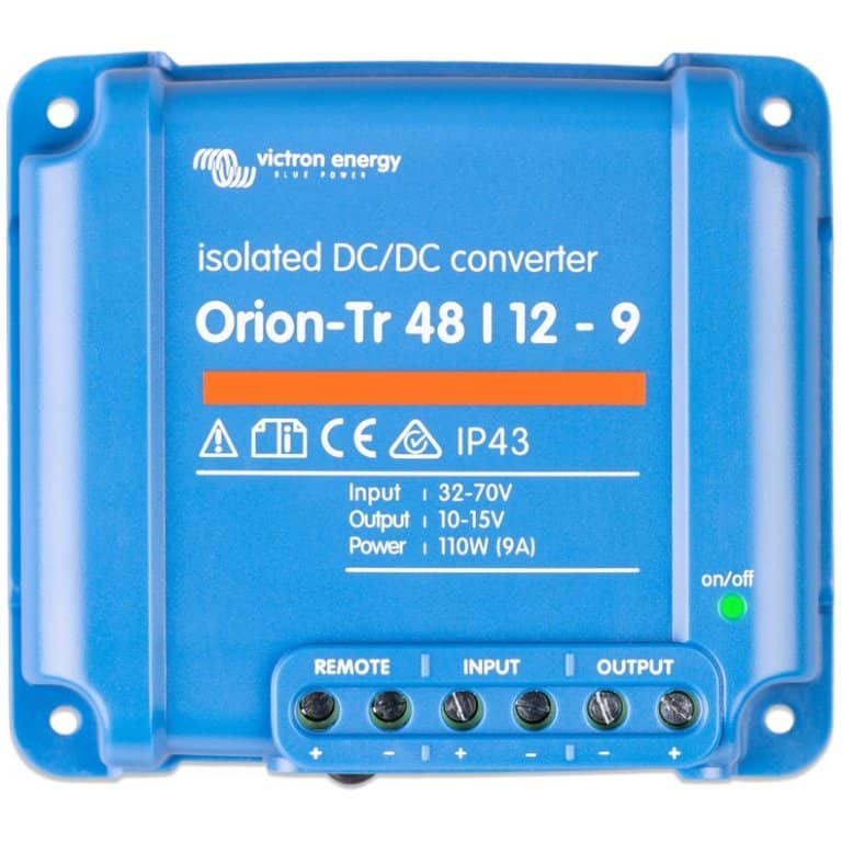 The Orion-Tr inverters have an adjustable output voltage. In addition, the inverter can be used as a battery charger. The inverter has a continuous output power of 380W and an input voltage range between 40 and 70V. In addition, the inverter has an adjustable output voltage of 40 to 60V. The completely separate circuit ensures galvanic separation between the two voltage sides, so that the input and output are completely isolated.