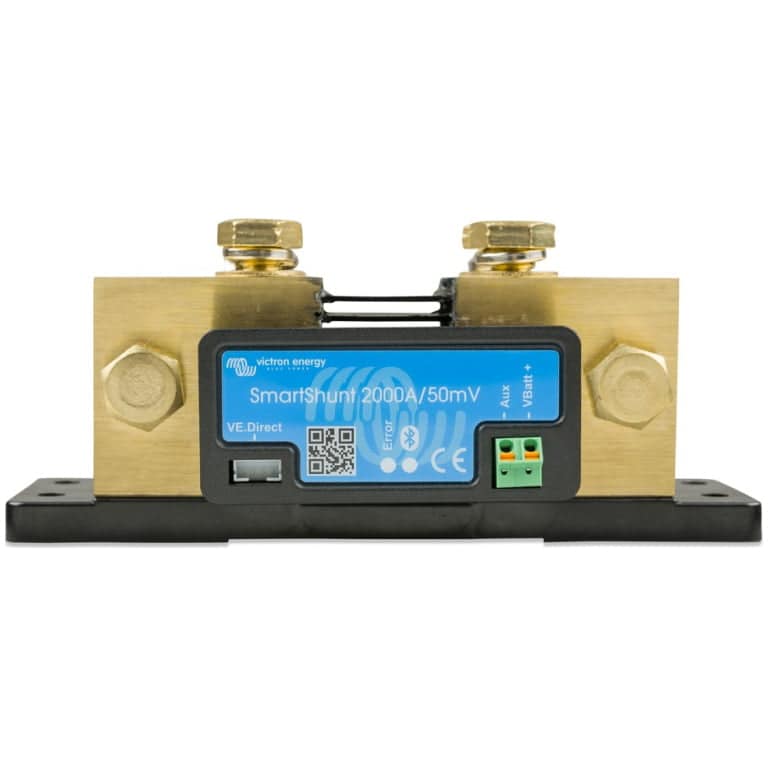 Met de SmartShunt 2000A/50mV is geen uitleesmonitor meer nodig. De monitorfuncties zijn middels BlueTooth communicatie direct beschikbaar op een SmartPhone of Tablet voor het bewaken en instellen met de VictronConnect App. Met een VE.Direct kabel kan de shunt worden verbonden met en GX Device.