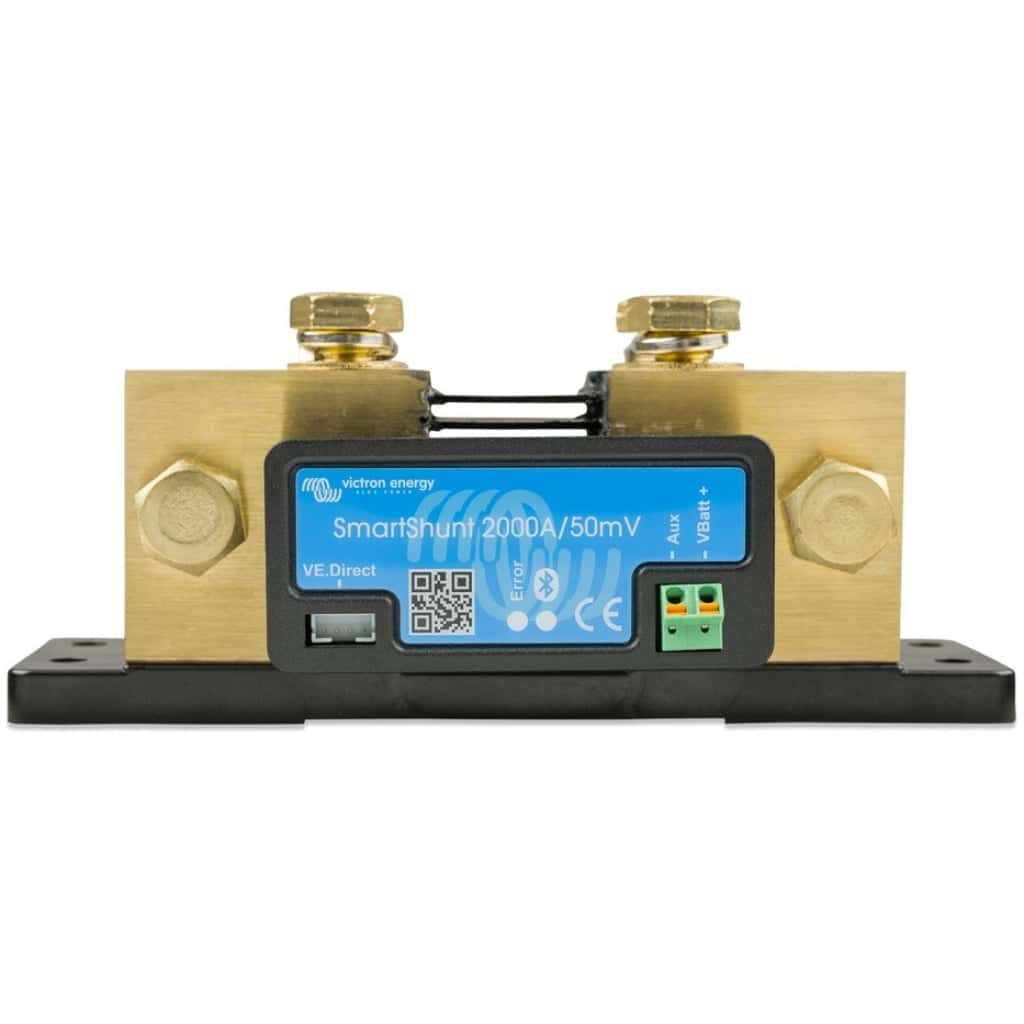 Met de SmartShunt 2000A/50mV is geen uitleesmonitor meer nodig. De monitorfuncties zijn middels BlueTooth communicatie direct beschikbaar op een SmartPhone of Tablet voor het bewaken en instellen met de VictronConnect App. Met een VE.Direct kabel kan de shunt worden verbonden met en GX Device.