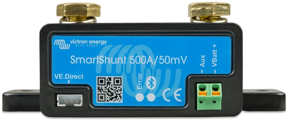 Met de SmartShunt 500A/50mV is geen uitleesmonitor meer nodig. De monitorfuncties zijn middels BlueTooth communicatie direct beschikbaar op een SmartPhone of Tablet voor het bewaken en instellen met de VictronConnect App. Met een VE.Direct kabel kan de shunt worden verbonden met en GX Device.